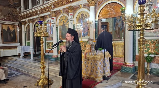 Κατά την σύντομη προσφώνησή του ανέφερε ότι «Με τη Χάρη του Θεού εισήλθαμε στο νέο εκκλησιαστικό έτος, το οποίο σηματοδοτεί και την έναρξη των κατηχητικών και φιλανθρωπικών δράσεων της τοπικής μας Εκκλησίας. Και όπως μέσα στη διάρκεια ενός ιεραποστολικού έτους έχουμε καθήκον να προσφέρουμε τον Λόγο του Θεού σε κάθε ψυχή που ποθεί να Τον προσλάβει, έτσι έχουμε καθήκον να προσφέρουμε την έμπρακτη αγάπη μας προς τον πάσχοντα και ενδεή συνάνθρωπό μας. Αυτό δεν αποτελεί μία απλή υποχρέωση, αλλά είναι ένα καθήκον μας, το οποίο απορρέει από την ευαγγελική διδασκαλία.