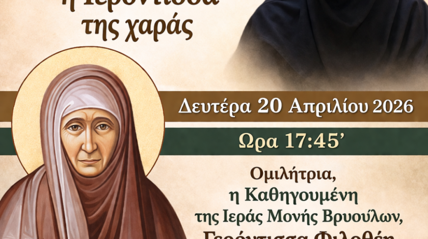 Την ερχόμενη Δευτέρα 20 Απριλίου 2026 και ώρα 5:45’ το απόγευμα, στον Ιερό Μητροπολιτικό Ναό Ζωοδόχου Πηγής Αγρινίου θα πραγματοποιηθεί η έβδομη – και τελευταία για την φετινή εκκλησιαστική χρονιά – αγιολογική διάλεξη, η οποία θα είναι αφιερωμένη στην Αγία Γαβριηλία της Λέρου, την Γερόντισσα της χαράς.