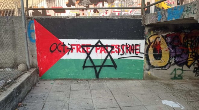 Άγνωστοι, δρώντας ως συνήθως μέσα στη νύχτα, βεβήλωσαν τη σημαία της Παλαιστίνης που είχαν φτιάξει μαθητές και μαθήτριες στα πλαίσια του φετινού μαθητικού φεστιβάλ της ΚΝΕ στο Αγρίνιο, στα γήπεδα του παλιού Αγίου Χριστοφόρου, προκειμένου να εκφράσουν την αλληλεγγύη τους στον ηρωικό παλαιστινιακό λαό και να καταδικάσουν το κράτος δολοφόνο του Ισραήλ που προχωρά στη γενοκτονία του.