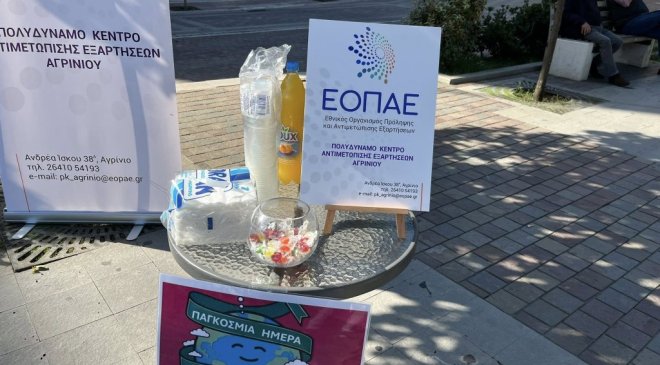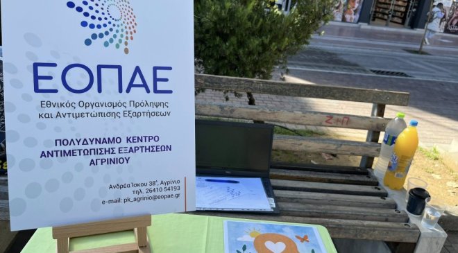 To Πολυδύναμο Κέντρο Αντιμετώπισης Εξαρτήσεων Αγρινίου του Ε.Ο.Π.Α.Ε διοργανώνει δράση ενημέρωσης και ευαισθητοποίησης, σήμερα Παρασκευή 10 Οκτωβρίου 2025, από τις 10:00 π.μ. έως τις 14:00 μ.μ., στην κεντρική πλατεία του Αγρινίου, στο πλαίσιο της Παγκόσμιας Ημέρας Ψυχικής Υγείας.