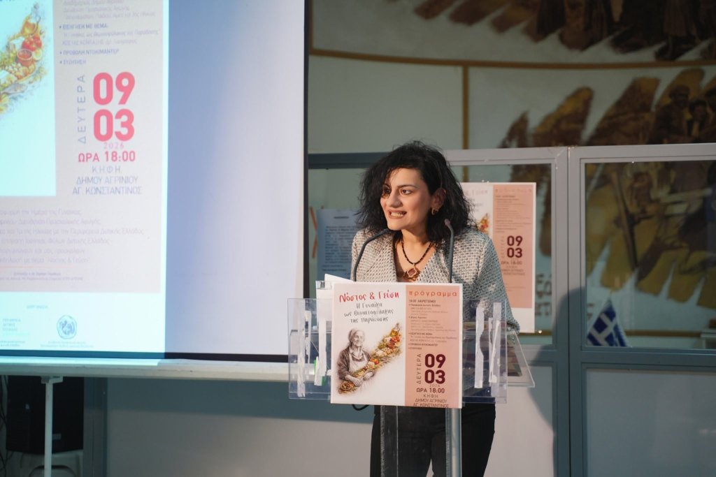 Με επιτυχία πραγματοποιήθηκε η εκδήλωση πού διοργάνωσε η Περιφερειακή Επιτροπή Ισότητας Φύλων Δυτικής Ελλάδας σε συνεργασία με τα Κ.Η.Φ.Η Αγίου Κωνσταντίνου του Δήμου Αγρίνιο για την Παγκόσμια Ημέρα της Γυναίκας με θέμα “Νόστος και Γεύση, η Γυναίκα ως Θεματοφύλακας της παράδοσης”.