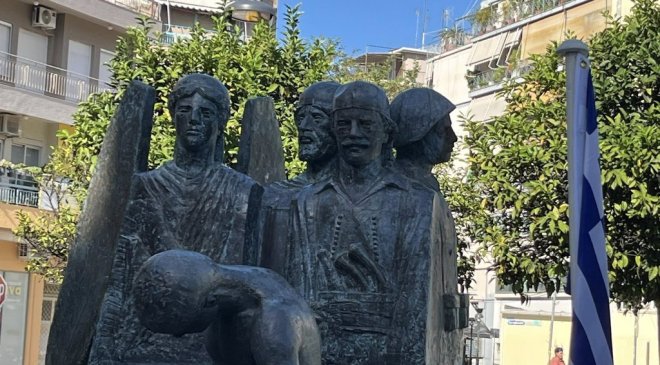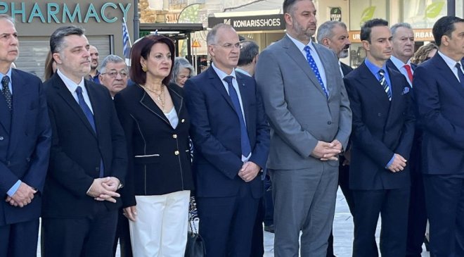 Ακολούθησε Επιμνημόσυνη δέηση και κατάθεση στεφάνων στο Μνημείο των Πεσόντων στην Πλατεία Μαρίας Δημάδη.