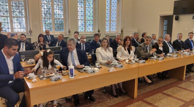 Ακολούθησε δεξίωση στην αίθουσα συνεδριάσεων του Δημοτικού Συμβουλίου παρουσία του Γενικού