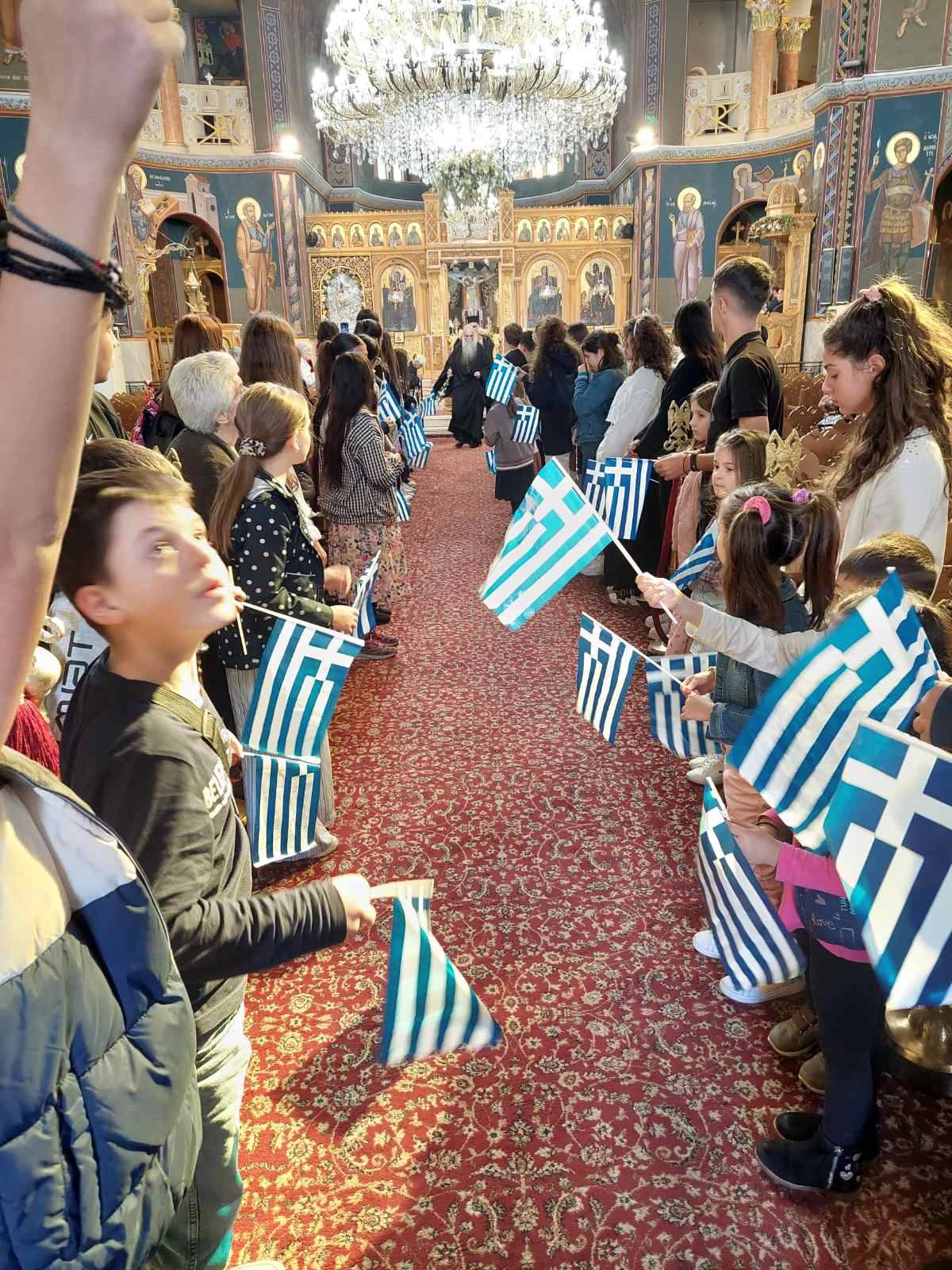 Με συγκίνηση και ευλάβεια το Αγρίνιο αποχαιρέτησε τον Άγιο Δημήτριο ενώ τα παιδιά του κατηχητικού τον προπέμπουν με Ελληνικές Σημαίες.