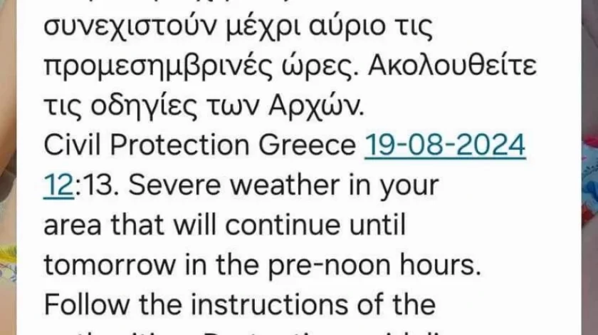 Παράλληλα, η Γενική Γραμματεία Πολιτικής Προστασίας συνιστά στους πολίτες να είναι ιδιαίτερα προσεκτικοί, μεριμνώντας για τη λήψη μέτρων αυτοπροστασίας από κινδύνους που προέρχονται από την εκδήλωση των έντονων καιρικών φαινομένων.