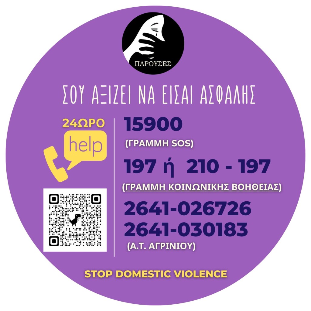 Με το σύνθημα “Σου Αξίζει να είσαι Ασφαλής”, με σκοπό να υλοποιηθεί καμπάνια ενημέρωσης των πολιτών, δημιουργήσαμε αυτοκόλλητα στα οποία αναφέρονται οι φορείς και οι γραμμές SOS που παρέχουν υπηρεσίες στήριξης σε θύματα βίας, καθώς και Qrcode που με την σάρωσή του ο πολίτης μπορεί να πάρει περισσότερες πληροφορίες.