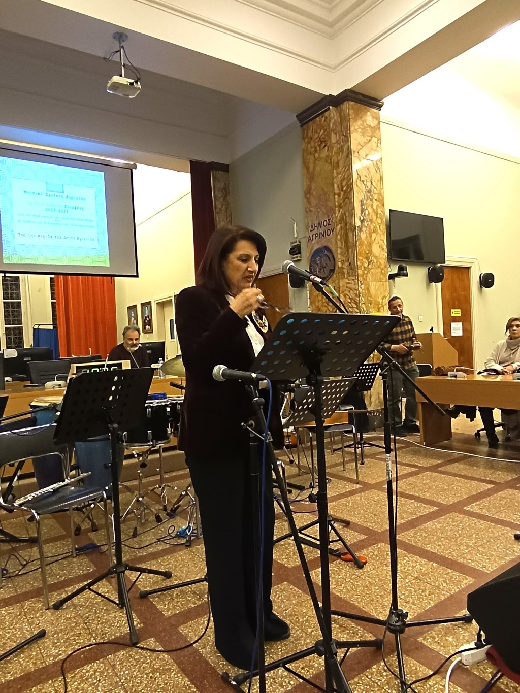 Την εκδήλωση πλαισίωσαν μουσικά μαθήτριες και μαθητές του Μουσικού Σχολείου Αγρινίου, παρουσιάζοντας πέντε μελοποιημένα ποιήματα, υπό τη Διεύθυνση – Διδασκαλία των Ηλία Κοτζιά και Βαγγέλη Θάνου.