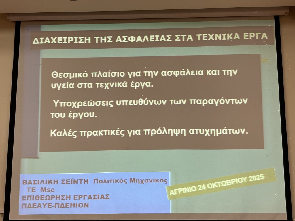 Στο Video η Βασιλική Σεϊντή στην ημερίδα του ΤΕΕ Αιτωλ/νιας «Διαχείριση της ασφαλείας στα τεχνικά έργα»