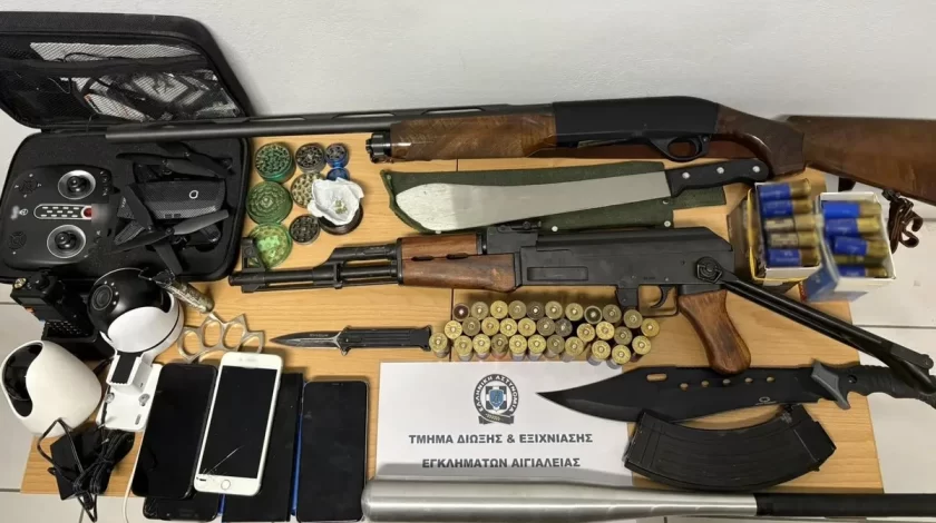 Στο δεύτερο σπίτι συνελήφθη ένας ακόμη άνδρας, ο οποίος είναι πατέρας κατηγορούμενου, καθώς βρέθηκαν ένα πολεμικό τυφέκιο με γεμιστήρα, ένα κυνηγετικό όπλο και 86 φυσίγγια, μία σιδερογροθιά, ένα μεταλλικό ρόπαλο, ένα πτυσσόμενο μεταλλικό μαχαίρι, ένα μαχαίρι τύπου ματσέτα, μία κροτίδα, ένας φορητός ασύρματος, μία συσκευή γεωεντοπισμού, δύο κάμερες ασφαλείας και επτά κινητά τηλέφωνα.