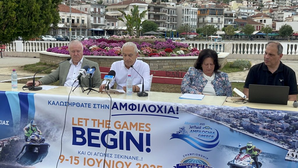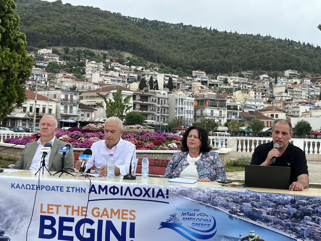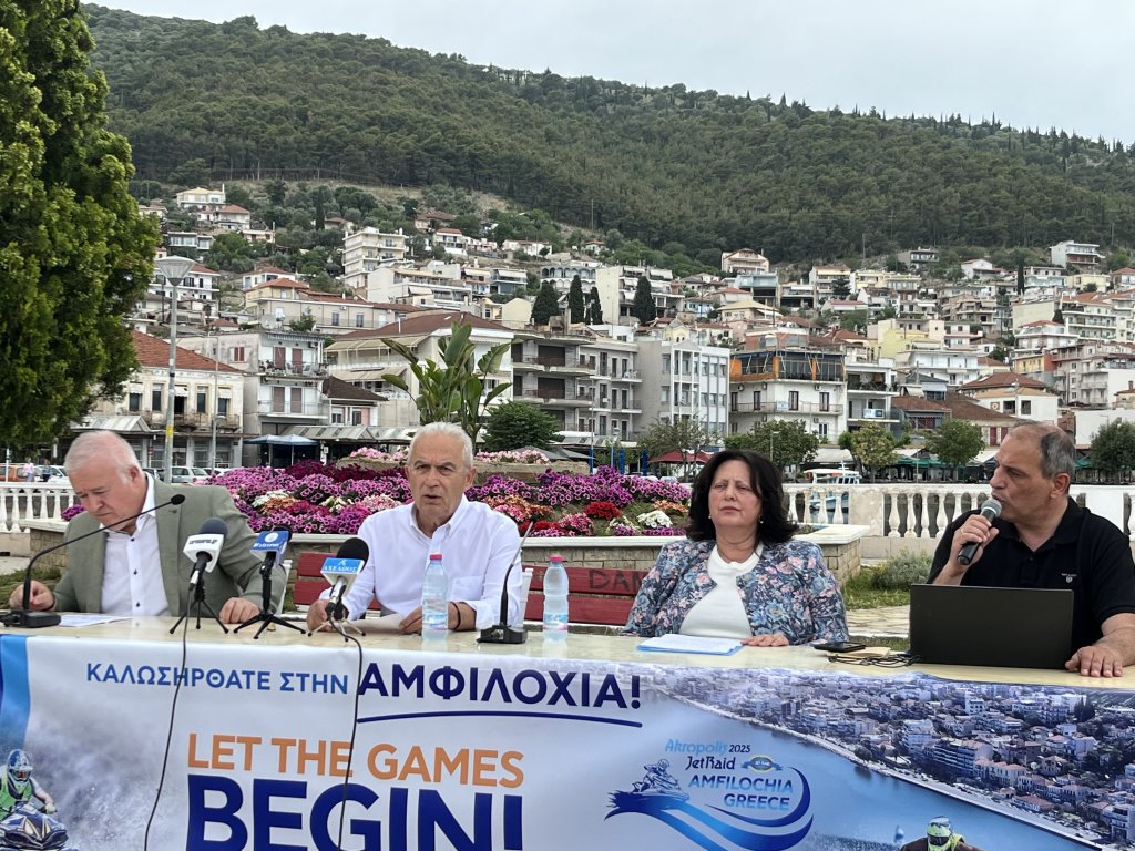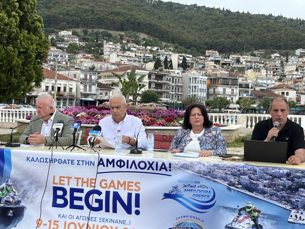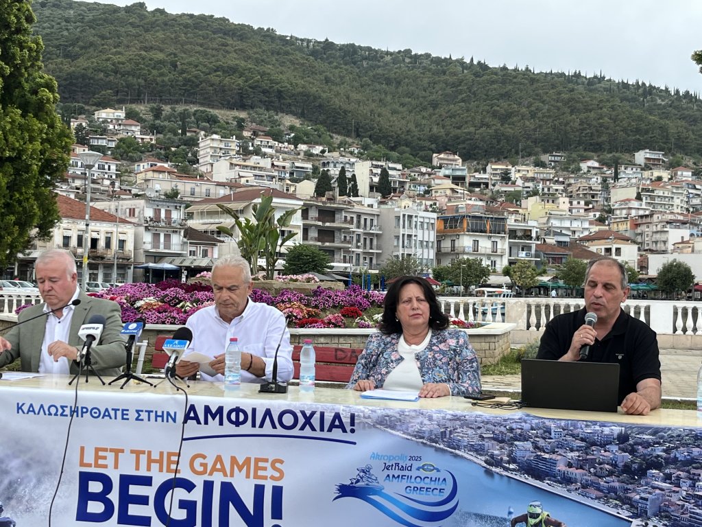 Με επιτυχία πραγματοποιήθηκε η συνέντευξη Τύπου για τους διεθνείς θαλάσσιους αγώνες Akropolis Jet Raid 2025 που θα πραγματοποιηθούν στην Αμφιλοχία 9 με 15 Ιουνίου. Η παρουσίαση του προγράμματος πραγματοποιήθηκε στην κεντρική πλατεία της Αμφιλοχίας, παρουσία του Δημάρχου Αθανάσιου Τορουνίδη, της αντιδημάρχου Τουρισμού Ειρήνης Φίλου και του Προέδρου του Δημοτικού Λιμενικού Ταμείου Δημήτρη Φούκα.