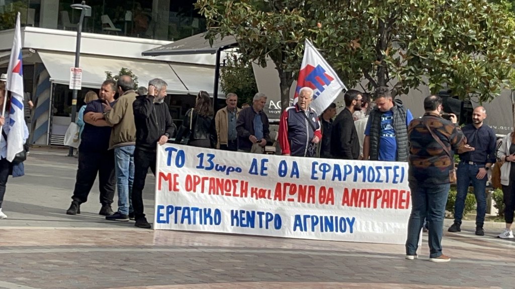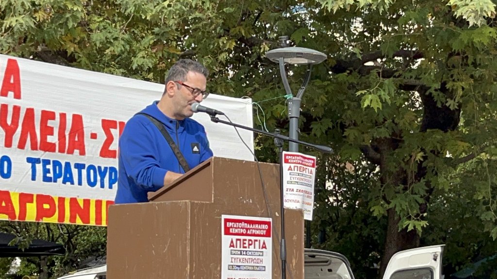 Με κεντρικό ομιλητή τον γεν. γραμματέα του Ε.Κ. Αγρινίου και πρόεδρο του Σωματείου Ιδιωτικών Υπαλλήλων Δημήτρη Δήμα ,πραγματοποιήθηκε σήμερα το πρωί (Τρίτη 14/10/2024) στην πλατεία Δημοκρατίας απεργιακή συγκέντρωση ενάντια στο νομοσχέδιο που καθιερώνει την 13ωρη εργασία στον ίδιο εργοδότη.