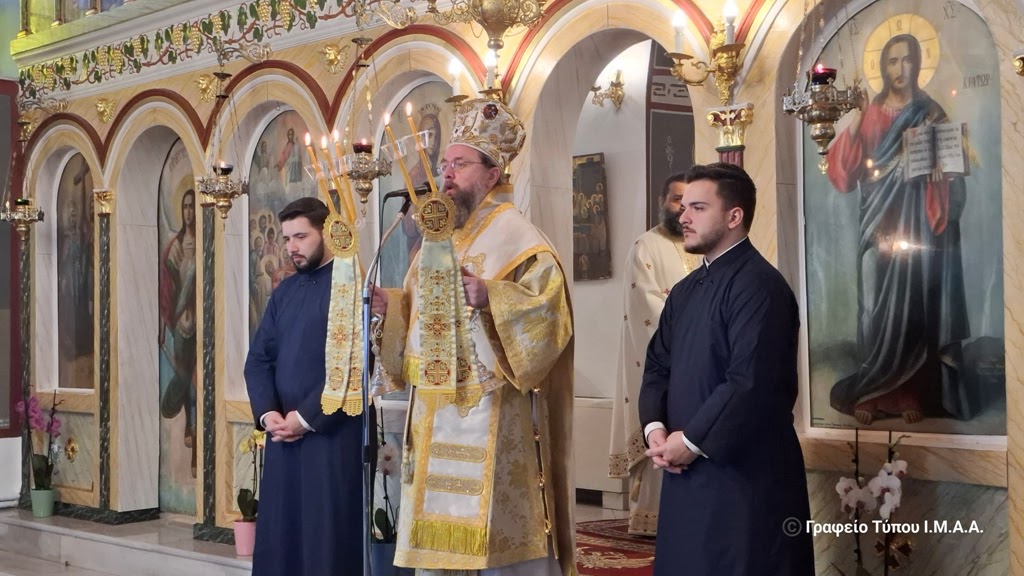 Στον Ιερό Ενοριακό Ναό Κοιμήσεως της Θεοτόκου ο Σεβασμιώτατος χοροστάτησε στην ακολουθία του Όρθρου, προεξήρχε στην Αρχιερατική Θεία Λειτουργία και τέλεσε το τεσσαρακονθήμερο μνημόσυνο του αειμνήστου Αγησιλάου Παλιούρα, κατά σάρκα πατρός του Πρωτοπ. Νεκταρίου Παλιούρα, Εφημερίου του Ιερού Ναού Αγίου Νικολάου Καινουργίου και του Ιερομοναχου Μητροφάνους Αγιοπαυλίτου, Αδελφού της Ιεράς Μονής Αγίου Παύλου Αγίου Όρους.