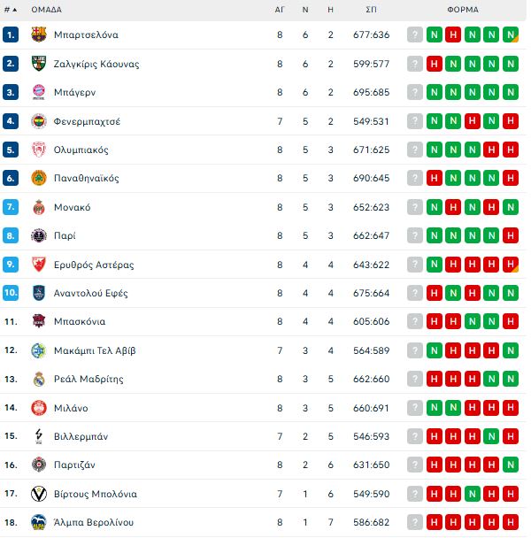 Στο τέλος της έφτασε και η 8η αγωνιστικής της κανονικής περιόδου της Euroleague, με το ντέρμπι «αιωνίων» στο ΟΑΚΑ ανάμεσα σε Παναθηναϊκό και Ολυμπιακό να μονοπωλεί φυσικά το ενδιαφέρον.