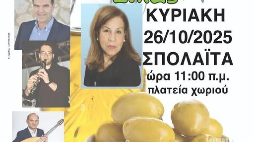 ΠερισσότεραΣπολάιτα: Η Γιορτή της Ελιάς, μετά την αναβολή, επιστρέφει την Κυριακή 26 Οκτωβρίου