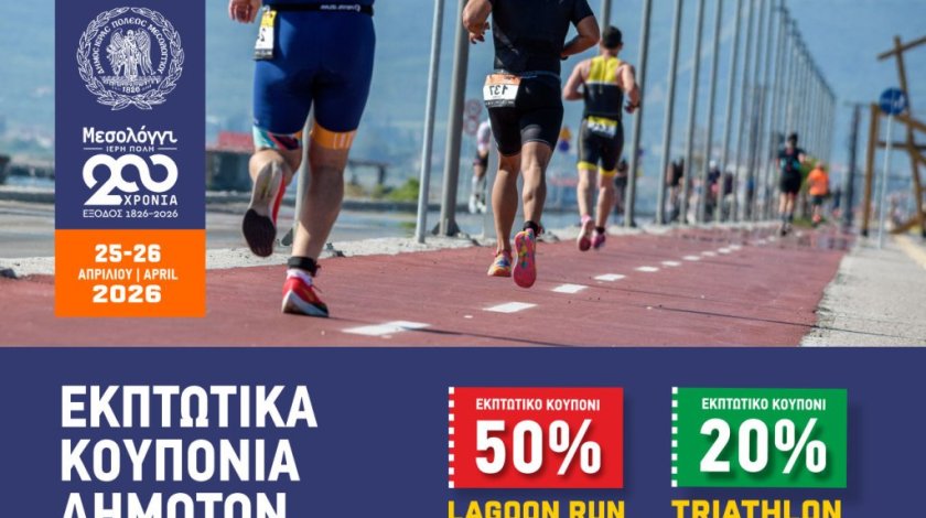 ΠερισσότεραΕκπτωτικά κουπόνια για δημότες στο multisport event “whynot Legacy – Messolonghi 2026”