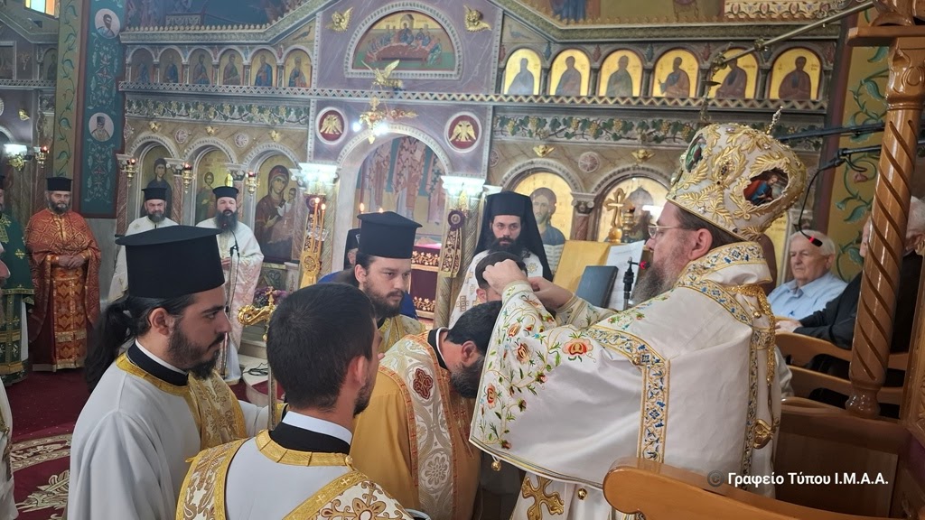 Στη συνέχεια της ομιλίας του αναφέρθηκε στο Μυστήριο της Ιερωσύνης λέγοντας, ότι «αποφασίσαμε, σήμερα, κατά την εορτή των Αγίων Αναργύρων να τελέσουμε την χειροτονία του Υποδιακόνου Δημητρίου, διότι, όπως ακούσαμε στο ευαγγελικό ανάγνωσμα και στο απολυτίκιο της εορτής, το θεμέλιο της ζωής των Αγίων Αναργύρων ήταν το “δωρεάν ελάβετε, δωρεάν δότε”.