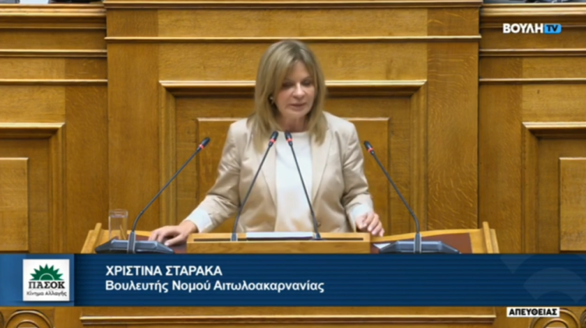 Στην ολομέλεια της Βουλής, κατά τη συζήτηση του νομοσχεδίου του Υπουργείου Εργασίας με τίτλο «Δίκαιη Εργασία για Όλους: Απλοποίηση της Νομοθεσίας – Στήριξη στον Εργαζόμενο – Προστασία στην Πράξη – Συνταξιοδοτικές ρυθμίσεις», τοποθετήθηκε η Βουλευτής Αιτωλοακαρνανίας του ΠΑΣΟΚ – Κινήματος Αλλαγής Χριστίνα Σταρακά, ασκώντας σκληρή κριτική στην κυβέρνηση για την πολιτική της στον χώρο της εργασίας.