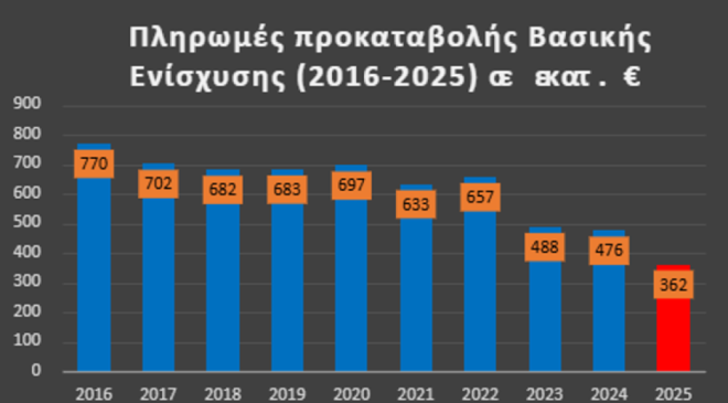 Παρακάτω παρατίθεται ο πίνακας πληρωμών της προκαταβολής Βασικής Ενίσχυσης από το 2016-2025: