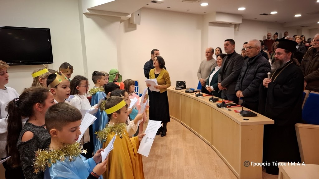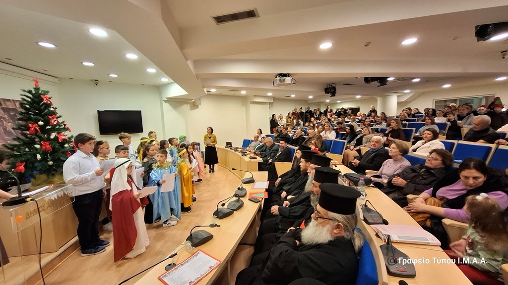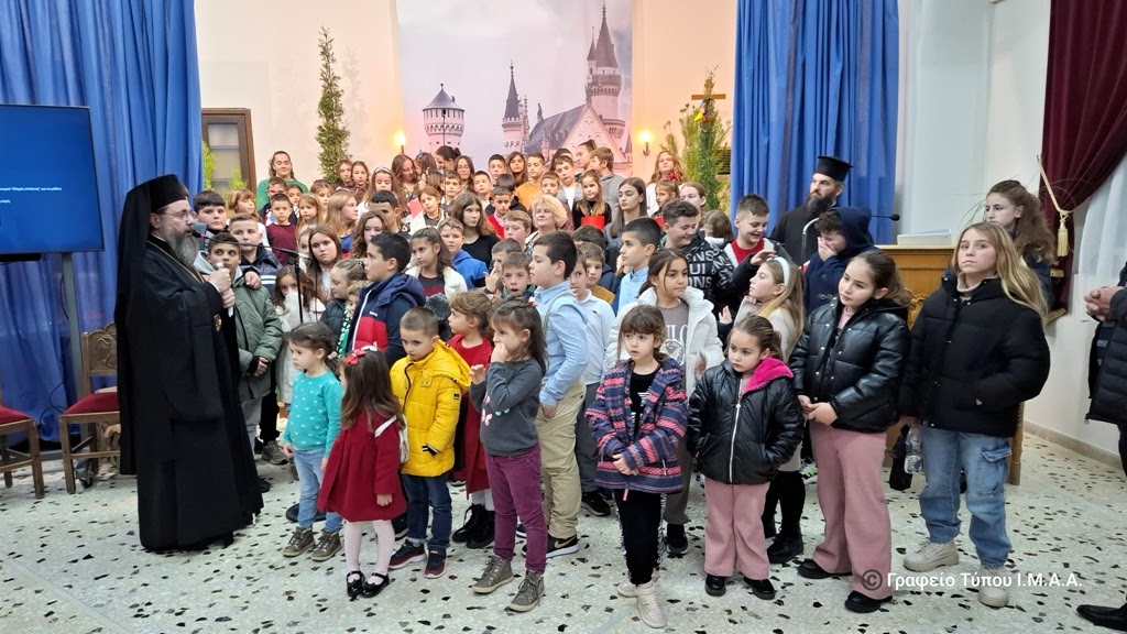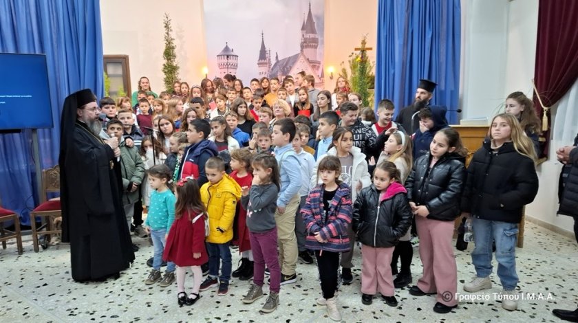 Εδώ, όμως, σήμερα τα παιδιά μάς έδωσαν πολλά μηνύματα, τα οποία πρέπει να τα κρατήσουμε πρώτα εμείς οι μεγαλύτεροι. Το βασικότερο μήνυμα είναι, ότι ο Χριστός θα γίνει άνθρωπος για να μπορέσουμε εμείς οι άνθρωποι να γίνουμε θεοί. Πριν από 2000 χρόνια γεννήθηκε στη Φάτνη της Βηθλεέμ και σε λίγες ώρες θα γεννηθεί στη φάτνη της καρδιάς μας. Αν θέλουμε να τον προσκυνήσουμε θα πρέπει να έχουμε την απλότητα και την καθαρότητα των ποιμένων. Θα δεχτεί και τα δικά μας δώρα, που θα είναι το χρυσάφι της αγάπης μας, το λιβάνι της υπακοής μας και η σμύρνα της μίμησης της δικής Του ζωής. Όταν όλα αυτά τα κάνουμε, τότε ολόκληρη η ζωή μας θα λάμπει, όπως έλαμψε εκείνη τη σκοτεινή νύχτα το άστρο που φώτισε τον ουρανό και οδήγησε τους μάγους και τους αγγέλους που έψαλαν ακατάπαυστα τον ύμνο της ειρήνης. Καλά και ευλογημένα Χριστούγεννα σε όλους».