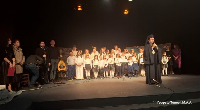 Οι νέοι και οι νέες των κατηχητικών σχολείων της Αρχιερατικής Περιφέρειας Αγρινίου παρουσίασαν την χριστουγεννιάτικη ιστορία «Τα Χριστούγεννα του μπάρμπα-Πανώφ», του Λέοντος Τολστόι, την οποία επιμελήθηκε η κα Δέσποινα Γεωργιάδη και η παιδική θεατρική ομάδα του Ιδρύματος Πολιτισμού της Ιεράς Μητροπόλεως παρουσίασε το θεατρικό δρώμενο «Οι Άγγελοι των Χριστουγεννιάτικών ευχών», σε επιμέλεια του κ. Γιάννη Σταμπέλου.