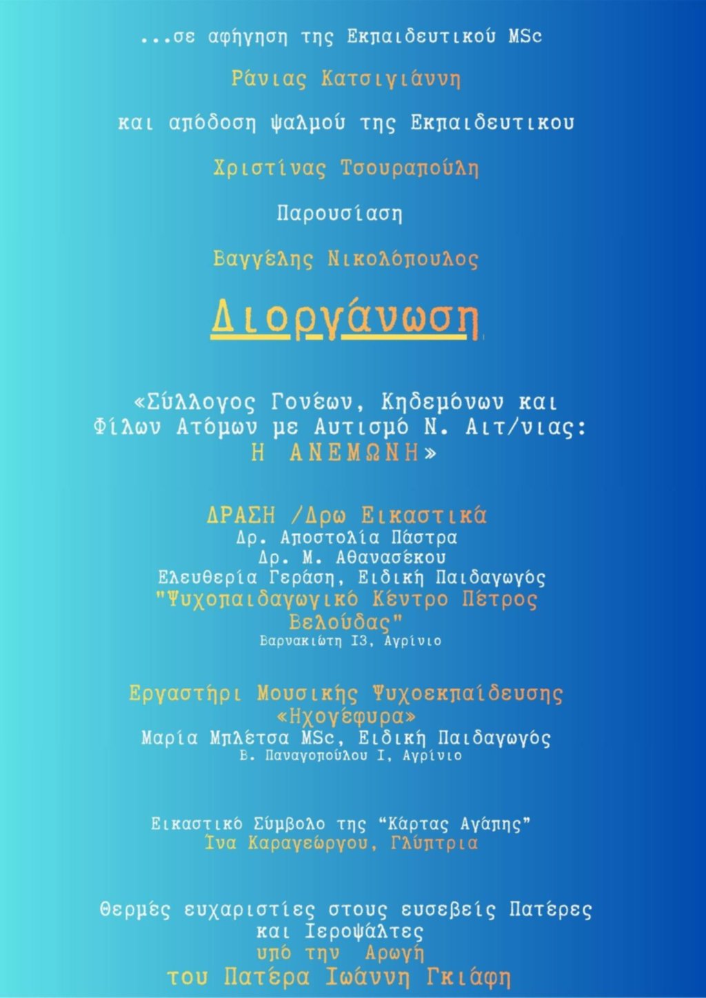 Συλλόγου Γονέων, Κηδεμόνων και Φίλων Ατόμων με Αυτισμό Ν. Αιτωλοακαρνανίας «Η Ανεμώνη»: