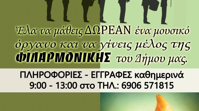 Με μεγάλη χαρά σας ενημερώνουμε για την ίδρυση φιλαρμονικής στο Δήμο μας!