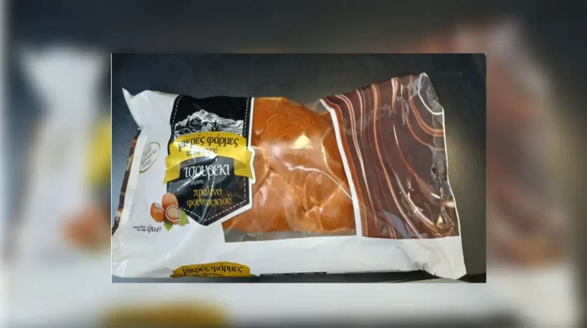Στην ανάκληση του προϊόντος «Τσουρέκι με γέμιση πραλίνα φουντουκιού – μικρές φάρμες του βουνού» προχωρεί ο ΕΦΕΤ.