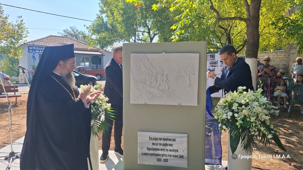 Αμέσως μετά την Θεία Λειτουργία, στον προαύλιο χώρο του Ναού έγιναν τα αποκαλυπτήρια του μνημείου που στήθηκε σε ανάμνηση της επετείου της συμπληρώσεως εκατό χρόνων ζωής της τοπικής Κοινότητος της Καμαρούλας.