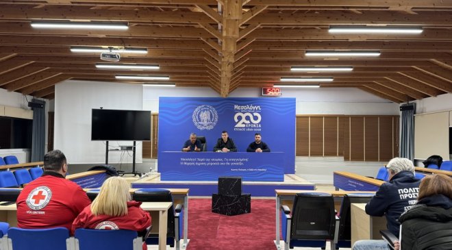 Έκτακτη συνεδρίαση του Τοπικού Επιχειρησιακού Συντονιστικού Οργάνου Πολιτικής Προστασίας πραγματοποιήθηκε ενόψει των έντονων καιρικών φαινομένων που προβλέπεται να εκδηλωθούν, σύμφωνα με το Έκτακτο Δελτίο Επιδείνωσης Καιρού της ΕΜΥ (16/02/2026) και το οποίο καθιστά την περιοχή μας σε κατάσταση «Red Code», στο Δημαρχείο Ιεράς Πόλεως Μεσολογγίου, σήμερα Δευτέρα 16 Φεβρουαρίου 2026. Στη συνεδρίαση προέδρευσε ο Αντιδήμαρχος Πολιτικής Προστασίας, Πολεοδομίας και Βιώσιμου Τουρισμού, Νίκος Παπανικολάου, μαζί με τον Αντιδήμαρχο Καθημερινότητας, Χρήστο Βούρβαχη και τον Πρόεδρο της ΔΕΥΑΜ, Γιάννη Πασπαλιάρη.