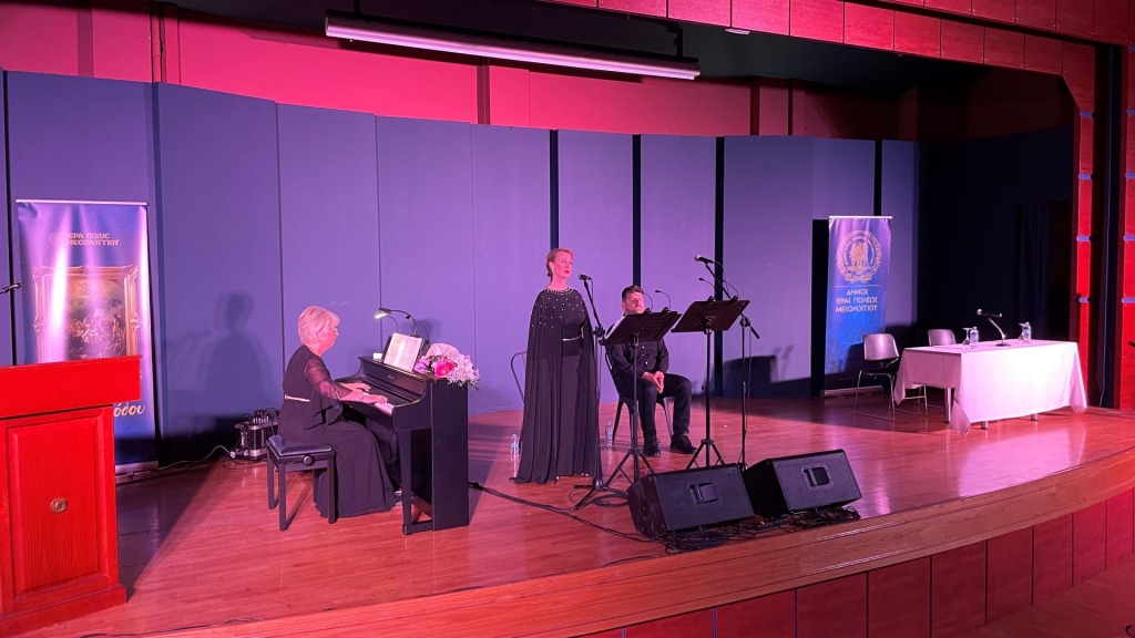 Ακολούθησε το μουσικό πρόγραμμα με την «Καντάτα Ελευθερίας», έργο του Χρήστου Λεοντή, διασκευασμένο για πιάνο και δύο τραγουδιστές, όπου το κοινό είχε την ευκαιρία να απολαύσει μια συγκινητική ερμηνεία από τους σολίστ Πόλυ Νικολοπούλου (Σοπράνο), Παύλο Μάλλιαρη (Ιεροψάλτη) και την πιανίστρια Μαρία Νικολοπούλου.