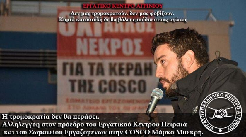 πρόεδρο του Σωματείου των Εργαζομένων της COSCO στα δικαστήρια.
