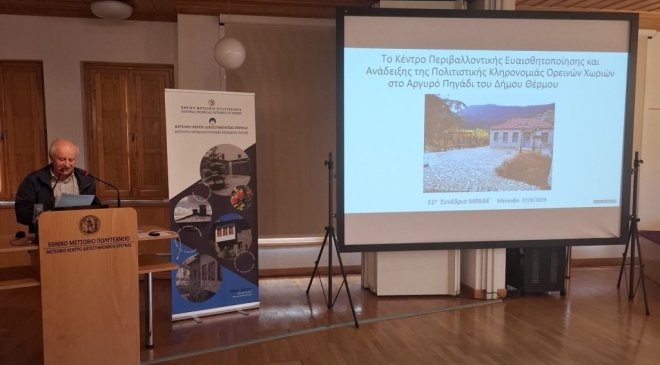 Είχαμε την ευκαιρία να παρουσιάσουμε τη δική μας προσπάθεια και εμπειρία μέσα από το θέμα: «Το “Κέντρο Περιβαλλοντικής Ευαισθητοποίησης και Ανάδειξης της Πολιτιστικής Κληρονομιάς Ορεινών Χωριών” στο Αργυρό Πηγάδι του Δήμου Θέρμου–Ο αγώνας ενός μικρού ορεινού χωριού».