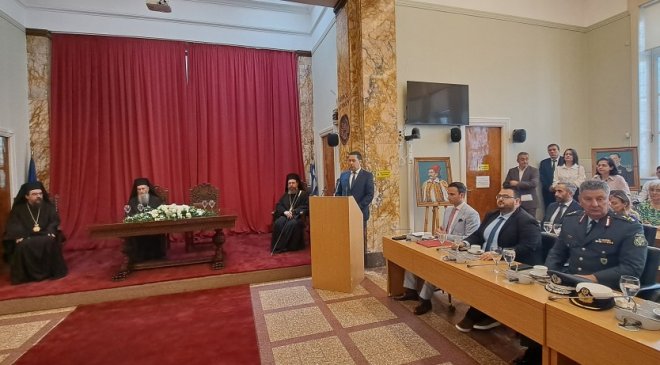 Στις 12:00 ξεκίνησε η τελετή ανακήρυξης του Σεβασμιότατου Μητροπολίτη Ναυπάκτου & Αγίου Βλασίου κ. Ιερόθεου σε επίτιμο Δημότη Αγρινίου.