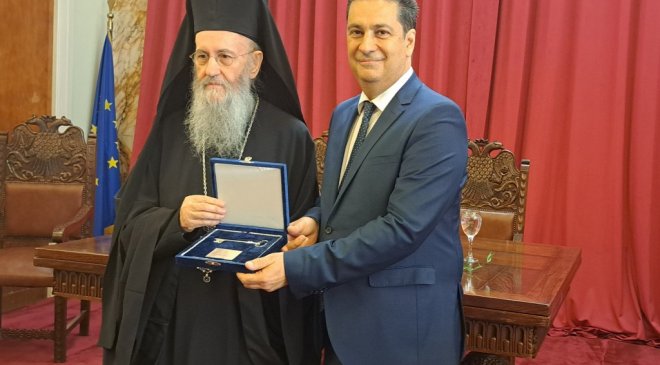 Ο κ. Ιερόθεος παρέλαβε το κλειδί της πόλης από τον Δήμαρχο Αγρινίου και ευχαρίστησε για την τιμή.