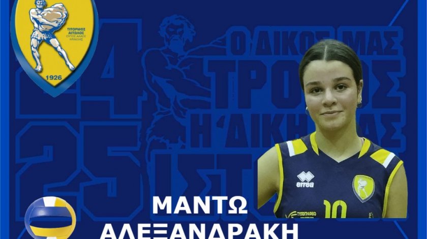 Το Διοικητικό Συμβούλιο του Γ.Φ.Σ. ΠΑΝΑΙΤΩΛΙΚΟΥ βρίσκεται στην ευχάριστη θέση να ανακοινώσει την προώθηση στην πρώτη ομάδα του τμήματος πετοσφαίρισης της αθλήτριας Μαντώς Αλεξανδράκη.