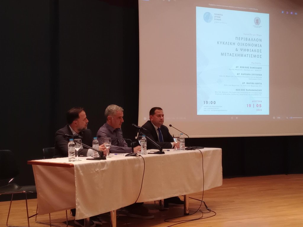 Η ημερίδα “Περιβάλλον, κυκλική οικονομία και ψηφιακός μετασχηματισμός” που διοργάνωσε η Περιφέρεια Δυτικής Ελλάδας στο Μεσολόγγι τη Δευτέρα 19/05/2025, με τη συμμετοχή του Δ. Ι.Π. Μεσολογγίου, ανέδειξε το πολύπλευρο έργο που υλοποιείται σε θέματα βιώσιμης ανάπτυξης και εφαρμογής της ψηφιακής τεχνολογίας προς όφελος των πολιτών της.
