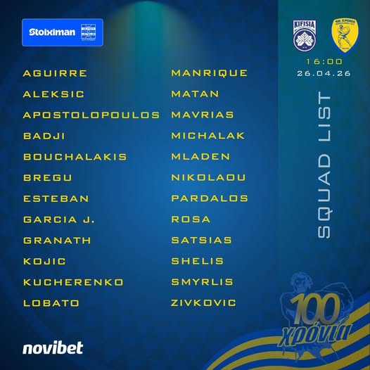 Η αποστολή τoυ Παναιτωλικού για την 5η αγωνιστική των Playouts απέναντι στην Κηφισιά 25 Απριλίου 2026 AgrinioDaily Η αποστολή τoυ Παναιτωλικού για την 5η αγωνιστική των Playouts του πρωταθλήματος απέναντι στην Κηφισιά