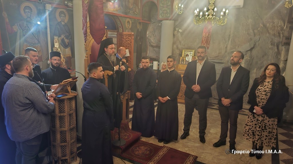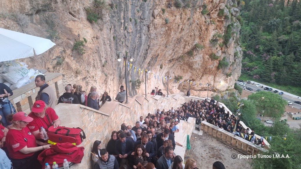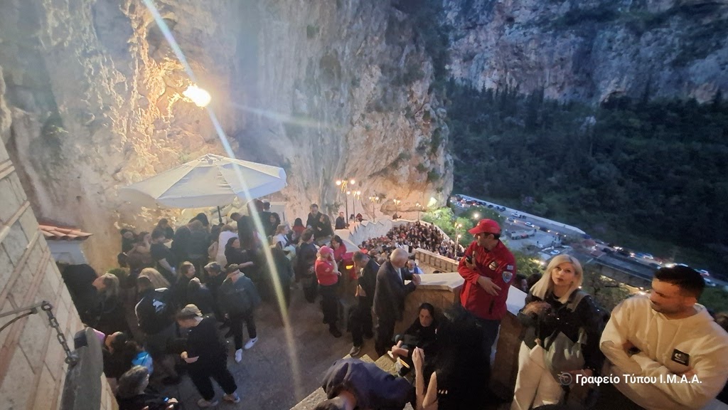 Το απόγευμα της Παρασκευής της Διακαινησίμου, ο Σεβασμιώτατος Μητροπολίτης Αιτωλίας και Ακαρνανίας κ. Δαμασκηνός μετέβη στο βραχομονάστηρο της Αγίας Ελεούσης, που βρίσκεται στο κακοτράχαλο φαράγγι της Κλεισούρας, στην αρχή του όρους Αράκυνθος, βορειοδυτικά του Μεσολογγίου. Χοροστάτησε στην ακολουθία του Μεθέορτου Εσπερινού και του Παρακλητικού Κάνονος της Υπεραγίας Θεοτόκου, στο Καθολικό της πανηγυρίζουσας Ιεράς Μονής και μίλησε στους πολυπληθείς προσκυνητές που συρρέουν κατά εκατοντάδες για να προσκυνήσουν την Ιερά και Θαυματουργό Εικόνα της Παναγίας της Ελεούσης, μεταξύ των οποίων ήταν ο Περιφερειάρχης Δυτικής Ελλάδος κ. Νεκτάριος Φαρμάκης και ο Αντιπεριφερειάρχης Αιτωλοακαρνανίας κ. Θανάσης Μαυρομμάτης.