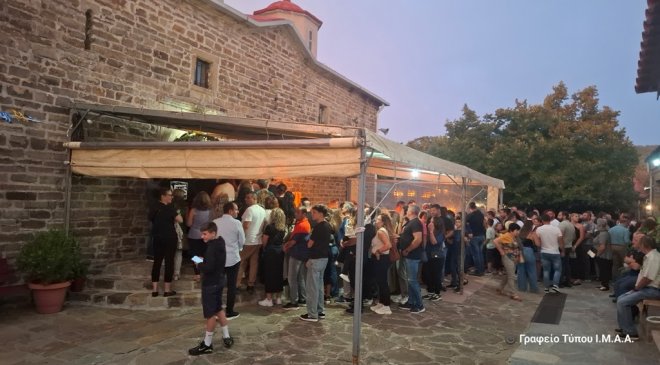 Μετά την Θεία Λειτουργία η Καθηγουμένη, Γερόντισσα Μαριάμ, στο Αρχονταρίκι της Ιεράς Μονής, προσέφερε πλούσια φιλοξενία στον Σεβασμιώτατο, τους ιερείς, τους άρχοντες και τους προσκυνητές.