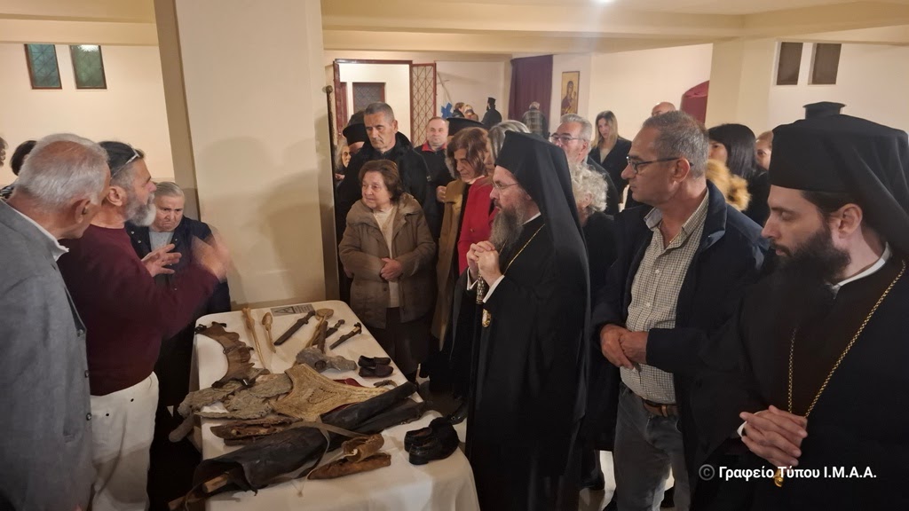 Τέλος, ο Πρόεδρος του Συλλόγου «Ελληνομνήμονες» Καλαμάτας, Συλλέκτης κ. Σπύρος Κατσίρας ευχαρίστησε για την φιλοξενία της εκθέσεως ιστορικών κειμηλίων, μίλησε για τα αντικείμενα που παρουσιάζονται και προχώρησε στην ξενάγηση του Μητροπολίτου Αιτωλίας και Ακαρνανίας και των παρισταμένων στα ιστορικά εκθέματα.