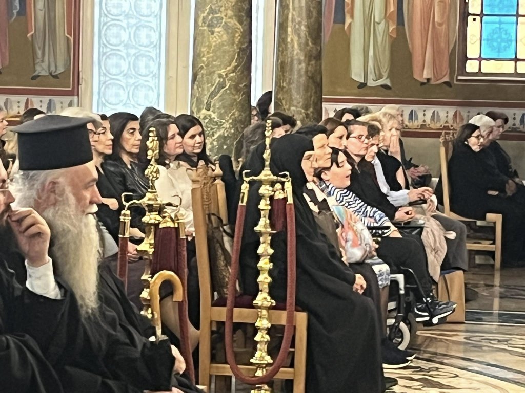Κεντρική ομιλήτρια της διάλεξης ήταν η Οσιολογιωτάτη Γερόντισσα Φιλοθέη, Καθηγουμένη της Ιεράς Μονής Παναγίας Βρυούλων της Ιεράς Αρχιεπισκοπής Αθηνών, η οποία παρουσίασε με γλαφυρότητα και πνευματικό βάθος τη ζωή, το έργο και τη μαρτυρία της Αγίας. Μέσα από προσωπικές αναφορές και θεολογική προσέγγιση, ανέδειξε την αγάπη, την ταπείνωση και τη διαρκή προσφορά της Αγίας Γαβριηλίας προς κάθε άνθρωπο, ανεξαρτήτως φυλής, θρησκείας ή κοινωνικής θέσης.