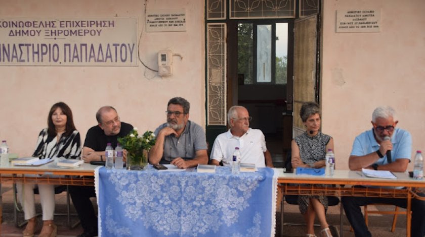 Με μεγάλη συμμετοχή και ξεχωριστό ενδιαφέρον πραγματοποιήθηκε την Τετάρτη 14 Αυγούστου 2025 και ώρα 20:00 στον προαύλιο χώρο του Δημοτικού Σχολείου Παπαδάτου Ξηρομέρου η παρουσίαση του βιβλίου «ΤΡΙΑ ΠΡΟΣΩΠΑ ΚΑΙ ΑΛΛΑ ΔΙΗΓΑΙΜΑΤΑ» του συγγραφέα Στέλιου Φούντα, που κυκλοφορεί από τις εκδόσεις ΑΡΜΟΣ.