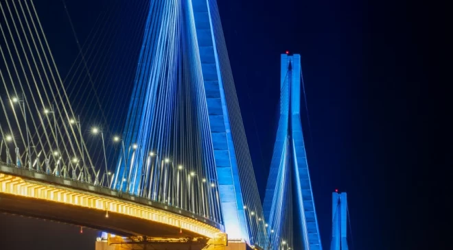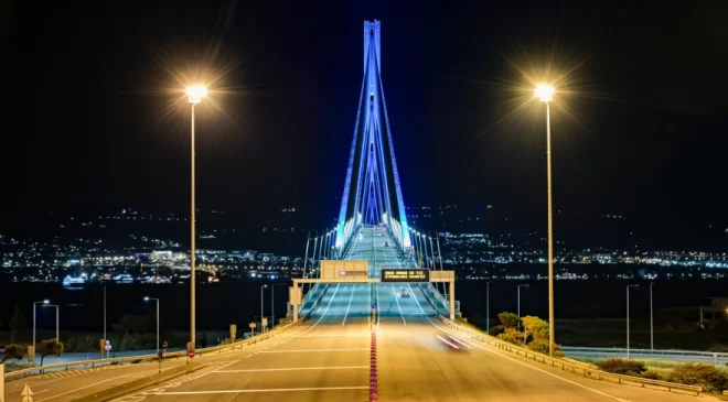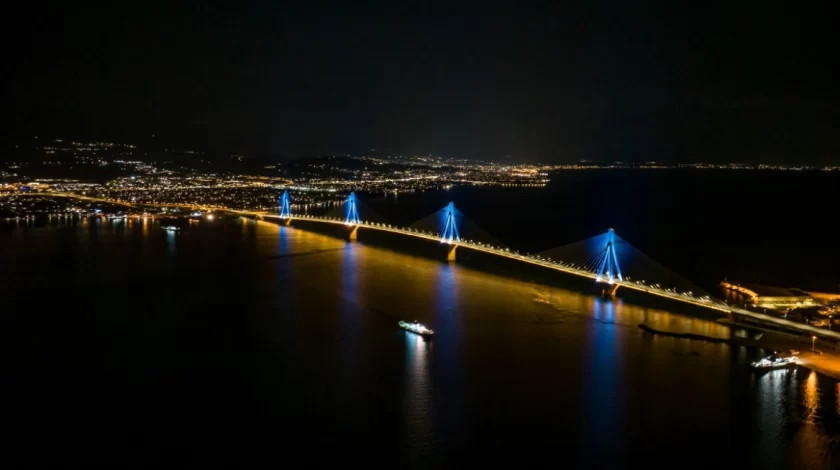 Ημέρα της Ευρώπης: Εντυπωσιακή φωταγώγηση της Γέφυρας Ρίου Αντιρρίου