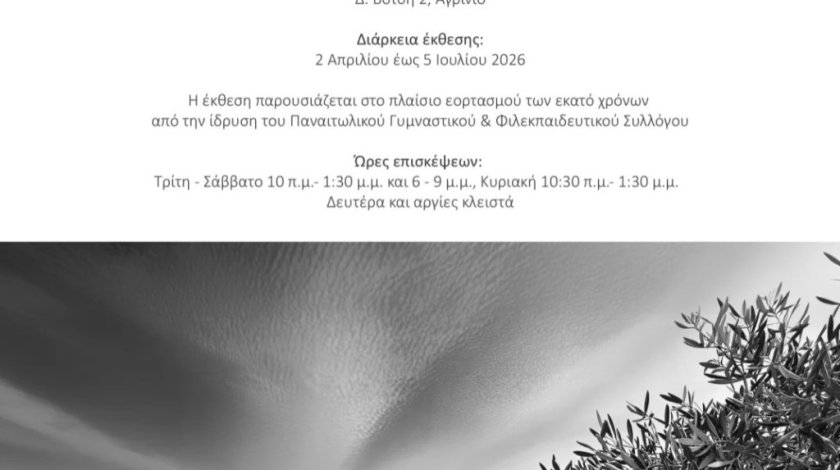 Τα εγκαίνια της έκθεσης θα πραγματοποιηθούν την Πέμπτη 2 Απριλίου 2026, ώρα 7.30 μ.μ. στη Δημοτική Πινακοθήκη Αγρινίου (Δ. Βότση 2, δίπλα από το Δημαρχείο) και θα διαρκέσει έως 5 Ιουλίου 2026.