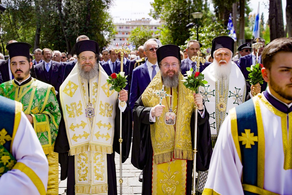 Ακολούθησε η επίσημη Δοξολογία, προεξάρχοντος του Μητροπολίτου Αιτωλίας και Ακαρνανίας κ. Δαμασκηνού, παρουσία του Εξοχωτάτου Προέδρου της Ελληνικής Δημοκρατίας κ. Κωνσταντίνου Τασούλα.