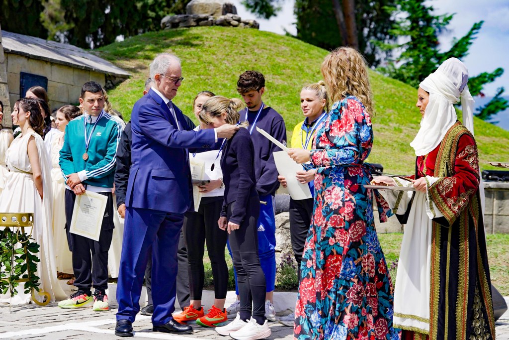 Ακολούθησαν η κατάθεση στεφάνου από τον Πρόεδρο της Ελληνικής Δημοκρατίας κ. Κωνσταντίνο Τασούλα και η εκφώνηση του πανηγυρικού της ημέρας από τον εκπρόσωπο της Ελληνικής Κυβερνήσεως, Υπουργό Εθνικής Άμυνας κ. Νίκο Δένδια, ενώ η υψίφωνος κα Βίβιαν Ντάγκλας απέδωσε το μοιρολόι «Να ζει το Μεσολόγγι».