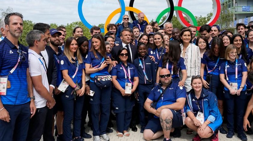 Πριν γευματίσει με τους Γάλλους αθλητές, ο Μακρόν χαιρέτησε τους εθελοντές «στην καρδιά του Ολυμπιακού Χωριού», τονίζοντας: «Η Γαλλία είναι πολύ υπερήφανη που φιλοξενεί αυτούς τους Αγώνες. Σας ευχαριστώ από τα βάθη της καρδιάς μου που μας επιτρέψατε να καλωσορίσουμε τον κόσμο».
