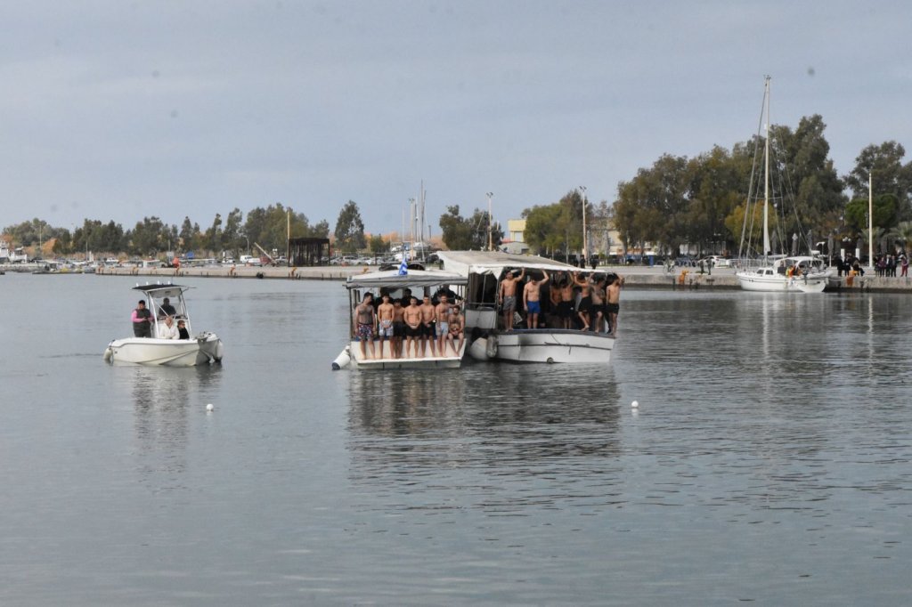 Σύμφωνα με το καθιερωμένο έθιμο, κολυμβητές βούτηξαν στα νερά για την ανάσυρση του Τιμίου Σταυρού, τον οποίο ανέσυρε ο Γιάννης Τσικνιάς, λαμβάνοντας την ευλογία του Σεβασμιωτάτου Μητροπολίτου.