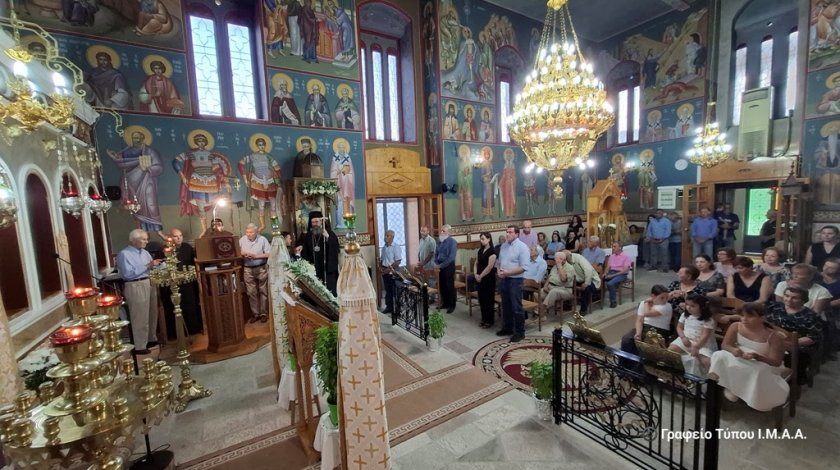 Μετά τις Ακολουθίες ο Σεβασμιώτατος είχε την ευκαιρία να επικοινωνήσει με τους πιστούς, τους εκπροσώπους των τοπικών αρχών και τους ιερείς, να ακούσει τα προβλήματά τους και τις αγωνίες τους και να δεχθεί την φιλοξενία τους.