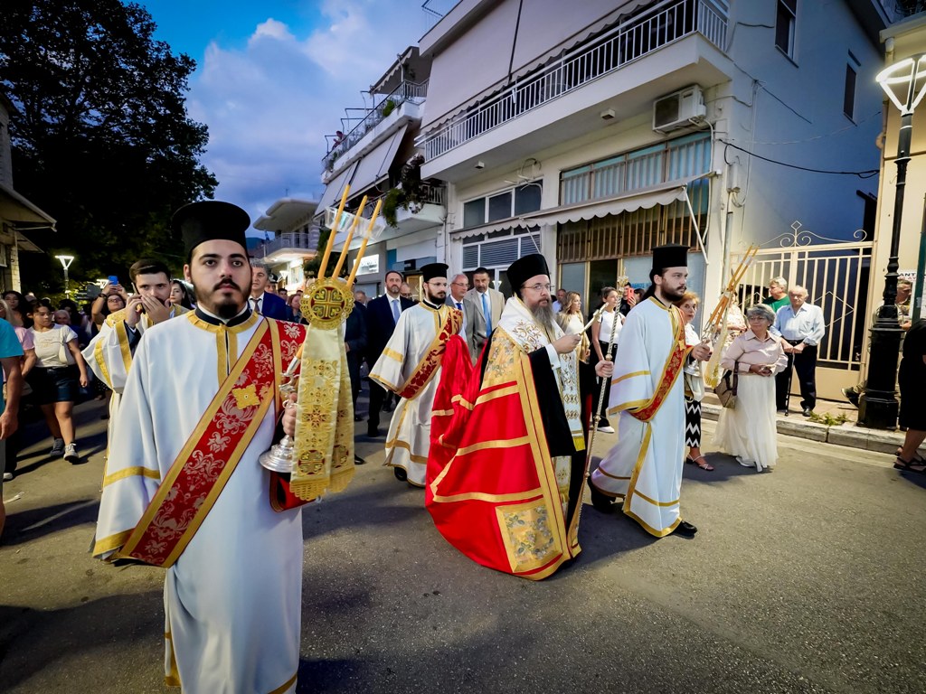 Κατόπιν, υπό τους ήχους της Φιλαρμονικής του Δήμου Αγρινίου και με την συνοδεία τμημάτων των πολιτιστικών συλλόγων της περιοχής ξεκίνησε η λιτανευτική πομπή με κατεύθυνση τον Ιερό Ναό Κοιμήσεως της Θεοτόκου, ενώ προηγουμένως, στην κεντρική πλατεία τελέσθηκε η αρτοκλασία και μίλησε στους πιστούς ο Σεβασμιώτατος.